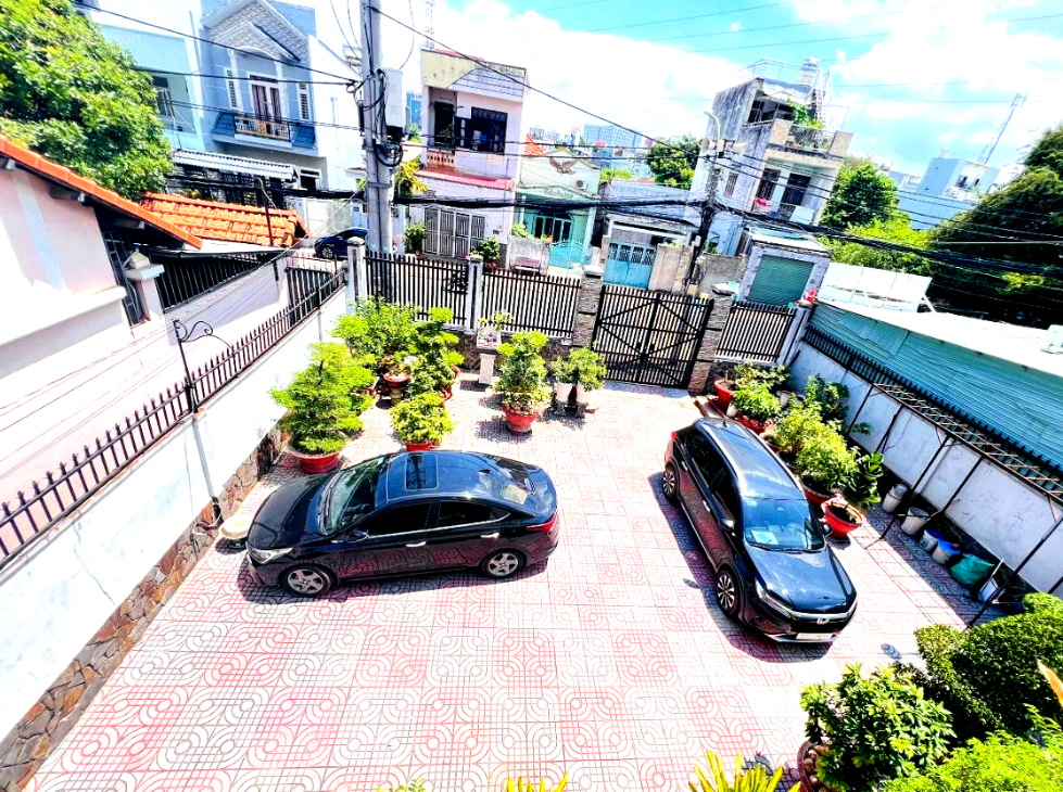 Sân trước cực rộng, hiện đang để trống, có thể kinh doanh ngay quán café, nhà hàng, showroom hoặc để cùng lúc 8-10 xe ô tô.