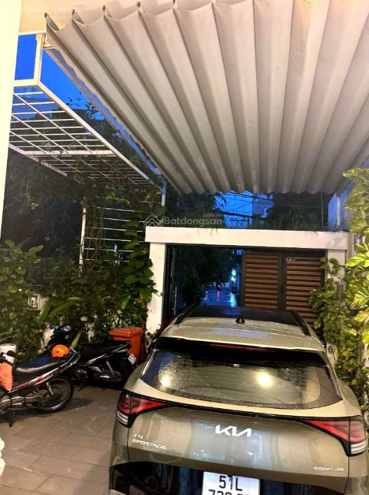 Sân trước rộng, đậu được ô tô và nhiều xe máy.